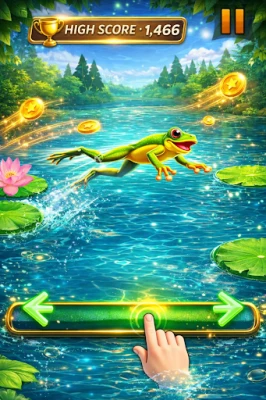 Потопете се в приключение с подскачаща жаба! Изживейте забавлението да управлявате пъргава жаба в красива естествена среда. Насладете се на интуитивно управление на движението за реалистично и завладяващо геймплей изживяване.