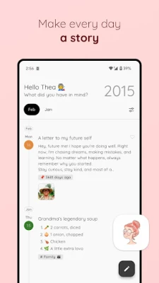 Storypad е вашето лично убежище, където всеки ден се превръща в незабравима история. Забравете за ограниченията на традиционния дневник и се потопете в свят на безгранична изява. С Storypad можете да персонализирате всяка дума: от избор на шрифт от над 1300 опции до детайлно форматиране с удебеляване, курсив, цветове и акценти. Изградете своя уникален стил и превърнете записите си в истински произведения. Всяка сутрин Storypad ще ви поднася "Спомени от миналото", показвайки какво сте писали преди година или повече, давайки ви възможност да погледнете назад и да осъзнаете колко сте израснали.
